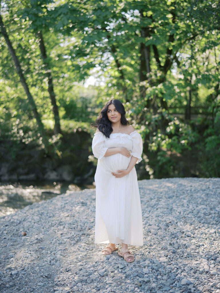 Not at all. Many of my clients wear non-maternity clothing for their Vancouver maternity photography session. Oversized knits, flowy dresses, linen sets, and elastic-waist pants often photograph beautifully and can be worn long after pregnancy.