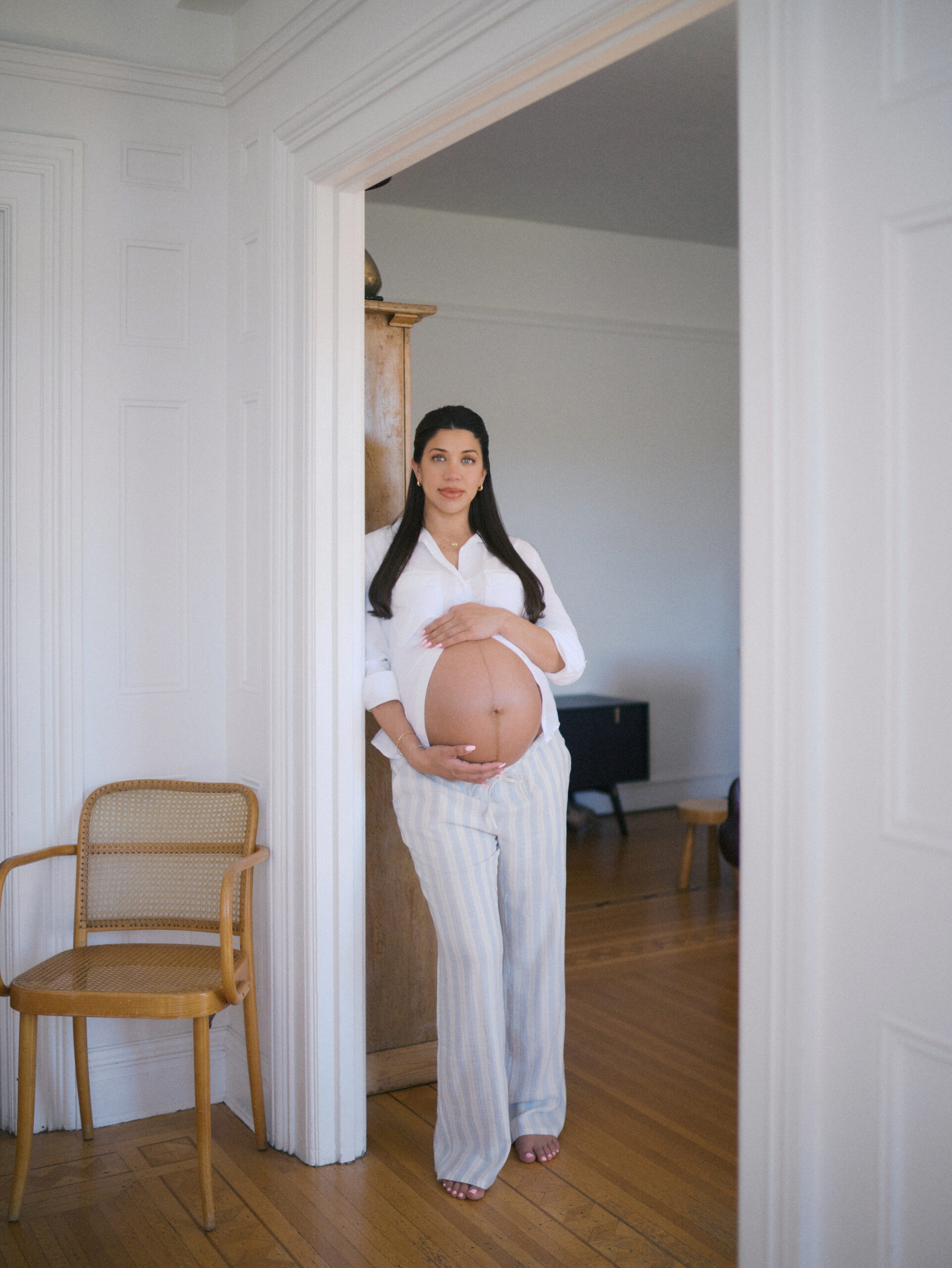 None of these are strictly maternity brands — and that’s exactly why they work so well for documentary maternity photography. They allow room for a growing belly without feeling temporary or costume-like.