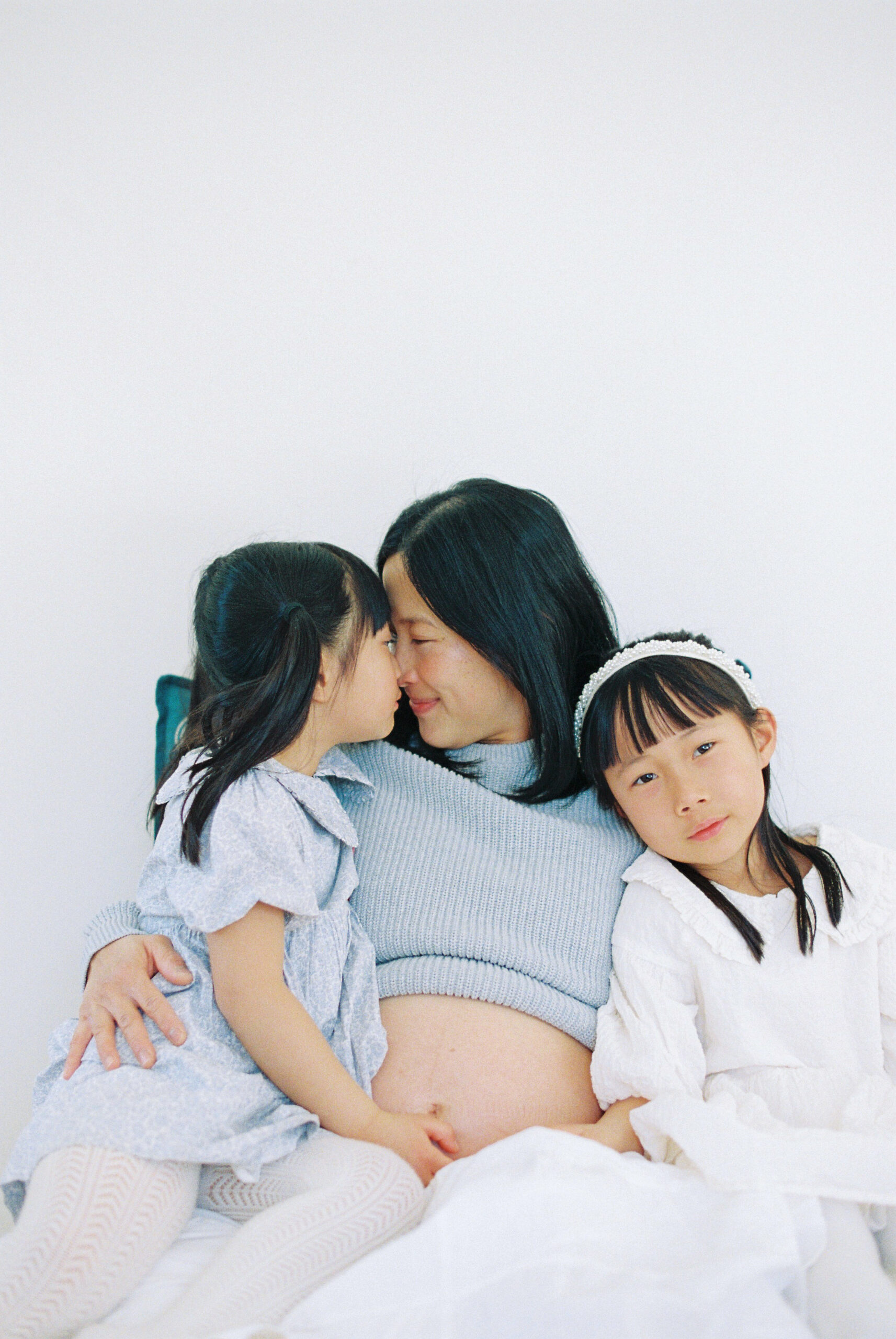 This Vancouver in-home maternity session with kids unfolded on a quiet, light-filled morning. I documented a growing family in the comfort of their own space. We started in the bedroom, where soft natural light poured in and shaped the scene.